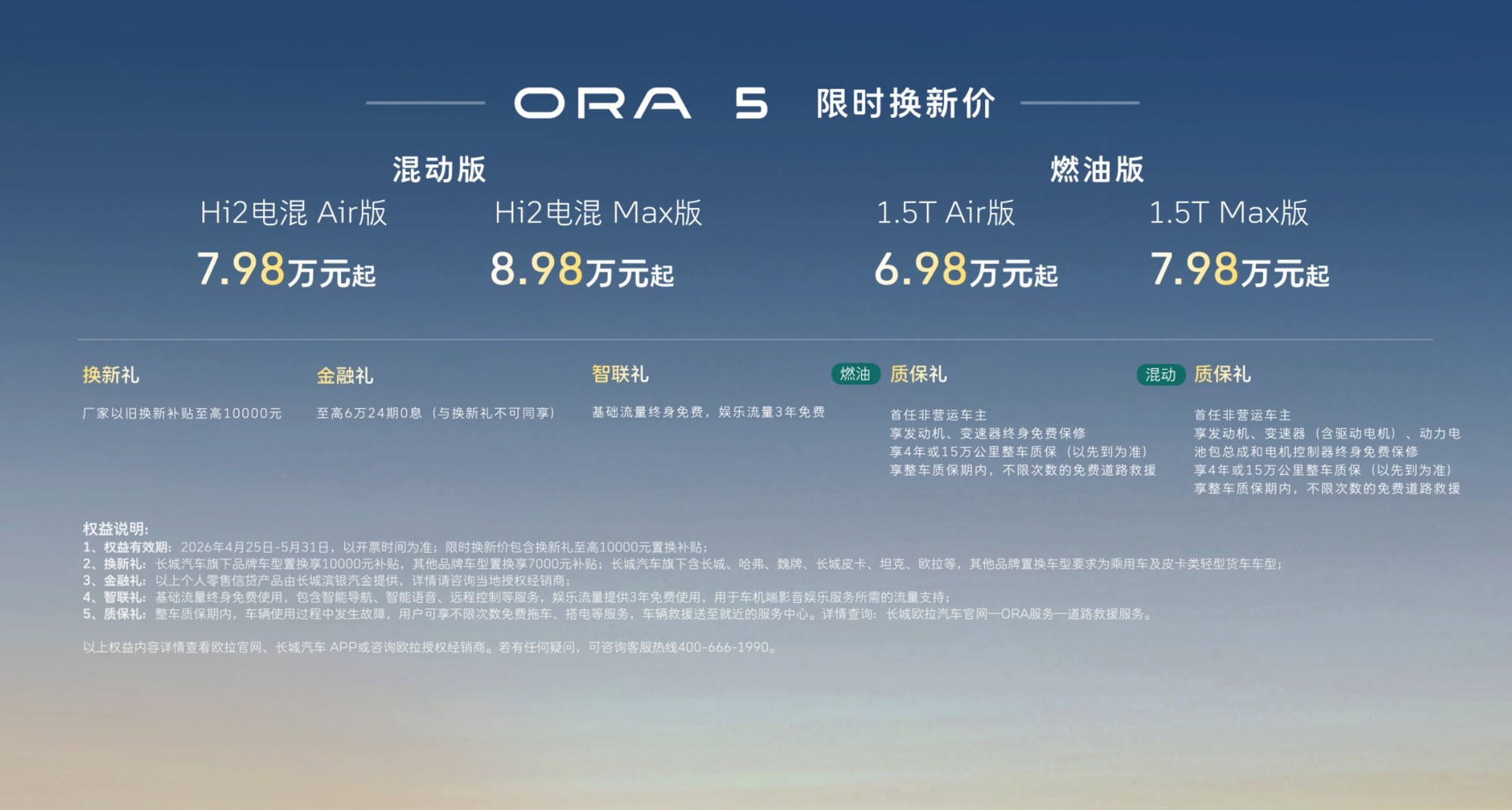 本文属于原创文章,如若转载,请注明来源:2026北京车展:长城欧拉5多动力版本上市 限时换新价6.98万元起https://auto.zol.com.cn/1170/11705784.html